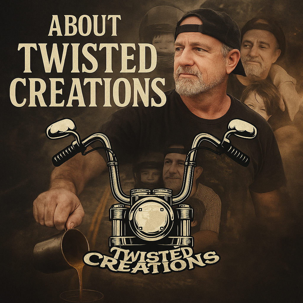 This isn’t a company built by suits — it’s built by a man who’s lived through it, learned from it, and still keeps pushing. Twisted Creations is for the ones who don’t fit in the box, the ones who turn pain into power and keep going when others stop.